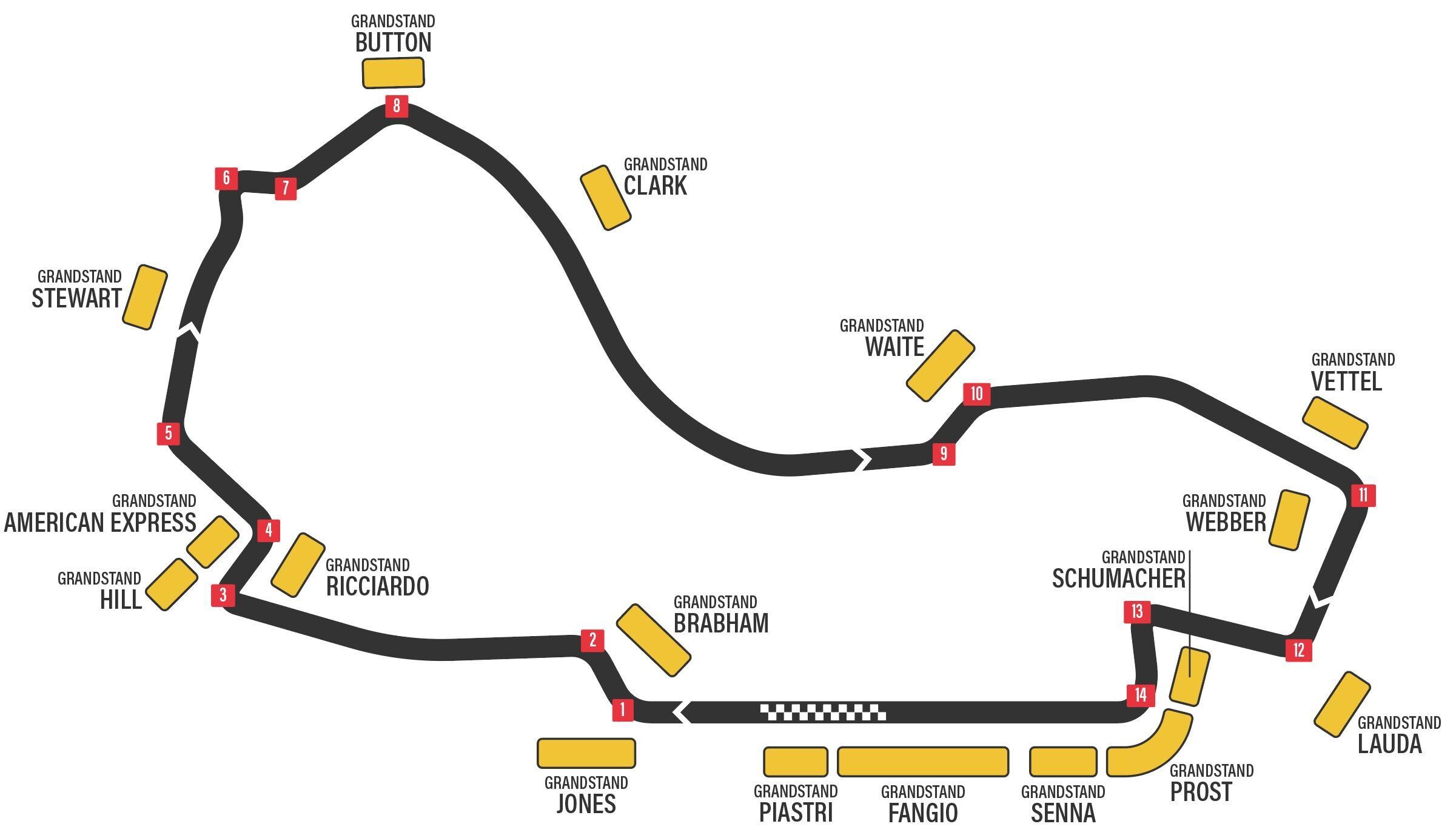Esta tribuna es una de las varias que ofrecen vistas de la última curva. Situada en el exterior de la pista, los coches se acercan por detrás de la tribuna y reducen la velocidad al llegar a la curva 13 a la derecha. Este lugar es perfecto para presenciar atrevidos adelantamientos de última hora cuando los pilotos reducen la velocidad. Al salir de la curva 13, los coches aceleran brevemente antes de abordar la curva final, proporcionando un emocionante espectáculo a los aficionados.